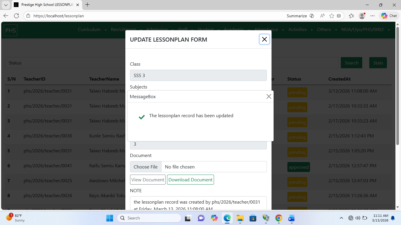 Navigate to Academic → LessonPlan.